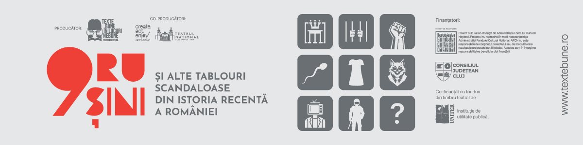 Finanțatori: Administraţia Fondului Cultural Naţional (AFCN), CONSILIUL JUDEȚEAN CLUJ, UNITER - instituție de utilitate publică (fonduri nerambursabile din timbru teatral)