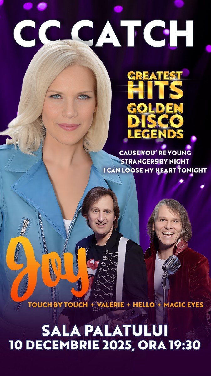 Sala Palatului devine scena unei seri explozive dedicate hiturilor care au scris istorie! CC Catch, vocea inconfundabilă a muzicii disco europene, revine la București pentru a interpreta celebrele sale piese: